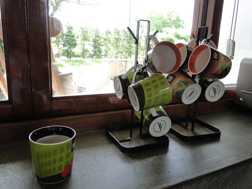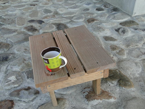 吃完早餐在廊下喝杯咖啡和淡定黑拍拍照